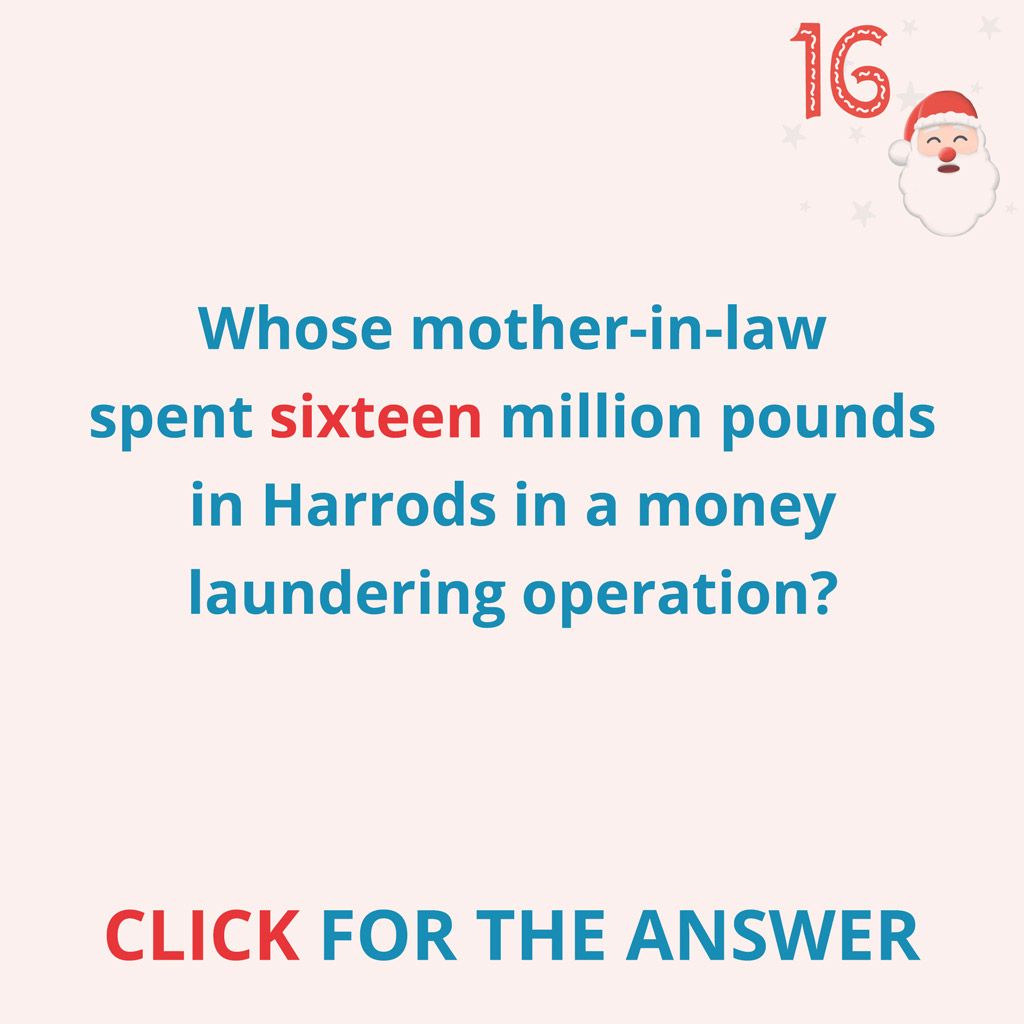 Whose mother-in-law spent sixteen million pounds in Harrods in a money laundering operation?