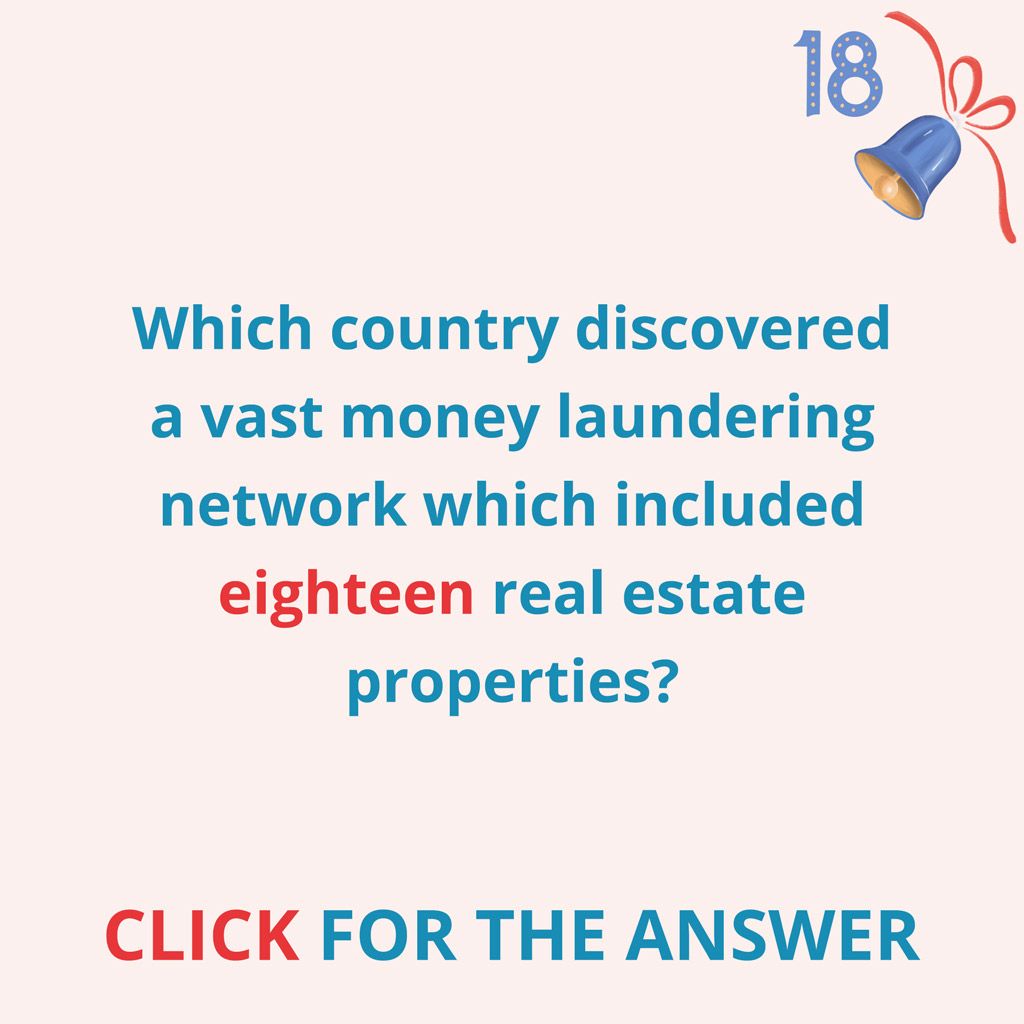 Which country discovered a vast money laundering network which included eighteen real estate properties?