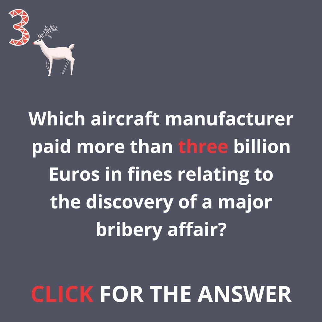 In January 2020, the French aircraft manufacturer reached a settlement with three regulators – US Department of Justice, UK Serious Fraud Office and the French National Financial Prosecutor’s Office (Parquet National Financier). The company paid more than EUR 3 billion in fines relating to a major bribery affair in the company’s civil aviation division and misconduct of its third-party vendors.