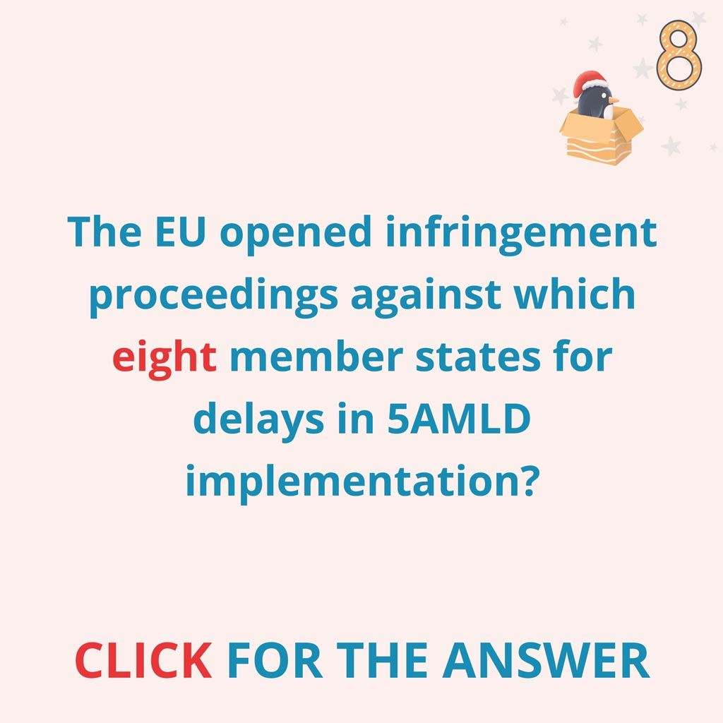 In February 2020, the European Commission opened infringement proceedings against eight Member States for delays in 5AMLD implementation. European “black sheep” such as Cyprus, Romania, Hungary and Portugal but also notable were the Netherlands, Slovakia, Slovenia and Spain. They all received their notice letters and were required to respond by taking appropriate measures within two months. Only Cyprus has not communicated any transposition measures and infringement proceedings are pending against 22 Member States.